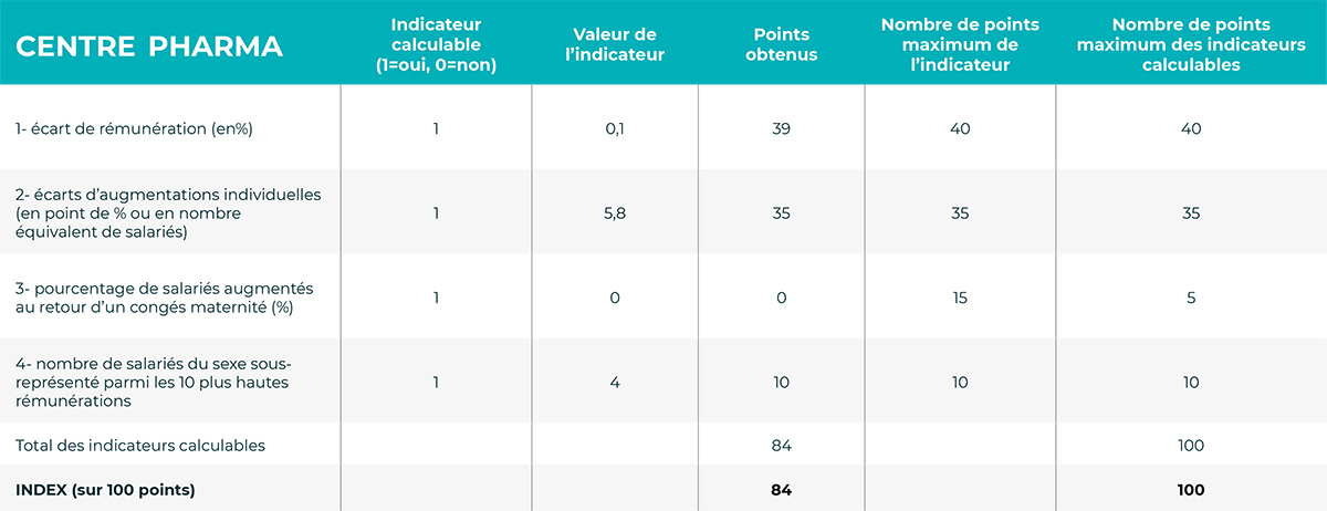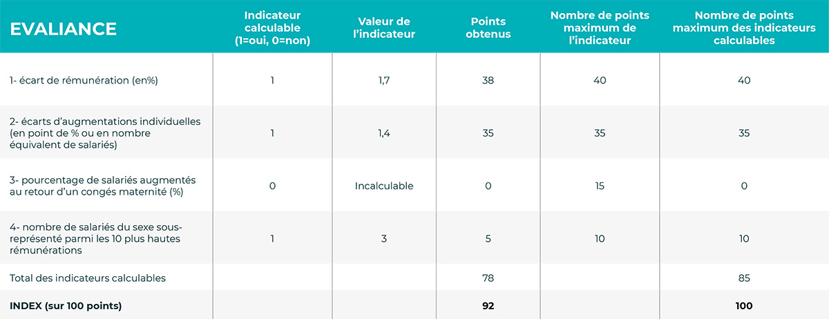 – L’écart de rémunération femmes-hommes (noté sur 40 points).